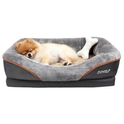 JOYELF Memory Foam Dog Bed Small Orthopedic & Sofa with Removable Washable Cover and Squeaker Toys as Gift