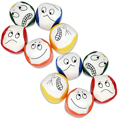 FUNNY JUGGLING BALLS GAMES -- The bright color juggling ball is no-bounce construction that ensures easy juggling. Either beginners or professionalists can play the juggle balls with effort VARIOUS OCCASSION PLAY JULLING BALLS -- You can play these juggling balls at circus-themed party, holidays,birthday. Juggling balls also can be a nice indoor activitie to spend with the boring time INTERESTING JUGGLING BEANS -- Designed with 5 different weird facial expressions, our juggling balls are vivid and you can release your stress when play these balls DURABLE JUGGLING BALLS SET -- Made of premium PU(Polyurethane), our juggle balls are soft that you don't have to worry about getting hurt SUITABLE FOR ALL HAND SIZE -- Diameter of the little juggling balls: 2 inch, they are suitable for all age people to catch them in hands and have fun with these balls