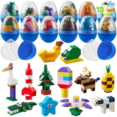 SUPER VALUE.Pre-filled easter egg includes 12 pieces of easter eggs and 12 pieces characters themed building blocks: Crocodile, snail, woodpecker, sheep, ice cream, pineapple, stars, helicopter, rocket, etc. It has cute sizes which are good for mini gift giving and Easter season's decorative. This is a play thing that matches perfectly with the easter egg season. ENDLESS FUN. There are 12 characters' themed building block designs featured in the set. Each of the 8 cute characters building blocks has corresponding pre-filled easter eggs. These blocks are designed to give not only enjoyment but also to enhance hands-on learning and critical thinking skills which are crucial for the child’s cognitive and motor development. They will surely enjoy building and playing our mini animal building blocks. IDEAL GIFT. Our building block set will surely give kids the best Play period experience this easter! This party favor set is perfect for Easter Egg Hunt Events, Easter Basket Stuffers, Parties Prizes, School Classroom Rewards, and presents. PREMIUM QUALITY. Child Safe: Non-Toxic. Meet the US toy standard. Safety test approved. CUSTOMER SATISFACTION. Providing a great shopping experience is our main priority to our customers. Feel free to message us through “contact sellers” if products don't meet your expectations. The celebrations start at JOYIN!, Manufacturer: Joyin US Corp