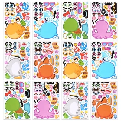 SUPER VALUE PACK! 24 Pieces Sea Theme Party Supplies Mix and Match Decoration Stickers. Featuring 6 Different Sea Animal Designs, Including Shark, Whale, Sea Turtle, Clownfish, Pufferfish, and Octopus. GREAT FOR PARTY BAG FILLER SIZE: 9"x 6"(22.8*15.2cm): Perfectly Sized At 9"X 6"(22.8*15.2cm), These Stickers Offer Ample Space for Imaginative Play, Allowing Kids to Create Unique Sea Faces with Ease.Elevate Your Party Favors with These Sea Stickers, Making Them A Great Addition to Party Bags and Delighting Kids with Interactive and Creative Play. RE-USABLE! Crafted with Vibrant Colors and Durable Materials, These Stickers Ensure A Long-Lasting and Visually Appealing Creative Experience. Extremely Fun! Each Sheet Has 3 Different Designs of Eyes, Mouths and Even Eyebrows to Make Whatever Silly or Cute Faces Your Kids Like. Enjoy Creativity and Fun to Your Party Celebration for Birthday and House Party, Group Activity, Art Class or Other Activities. CUSTOMER SATISFACTION. Providing A 100% Satisfaction Experience Is Our Main Priority to Our Customers. Feel Free to Message us Through “Contact Sellers” If Products Don'T Meet Your Expectations. The Celebrations Start at JOYIN!