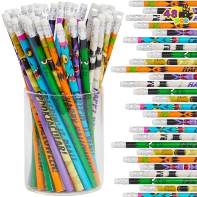 Complete Pack. Each package contains 48PCS Halloween themed pencils with erasers for kids party favor goodies gift prize party favor supplies, including 6 colorful and eye-catching pencil pattern designs, you also can share them with your family and friends. Unique Design. These halloween theme pencils are designed with a wooden body and carbon pencil lead refill that allows for smooth writing, durable and can be applied for a long time, clear handwriting that is not easily broken. The top of pencils is also equipped with a high-quality eraser for easy erasures while writing. Wide Application. Increase our Halloween themed stationery to Halloween party goody bags for a candy-alternative treat! These Halloween pencils #2 also work great for handing out to trick-or-treaters or other Halloween event party favors, birthday presents, game prizes, prizes for students, seasonal holiday ghost theme party, classroom rewards, Halloween night event and Trick or Treat prize! Premium Quality. These Halloween wooden pencils with erasers are safe to use and made from quality material. Durable, safe, and eco-friendly.Child safe. Non-Toxic. Meet the US toy standard. Safe test approved. Encourages ingenuity. Halloween is a time for imagination and self-expression. Our Halloween toys pencil helps children to unleash their ingenuity and create Halloween-themed artwork, stories, and more. Feel free to use their imagination.