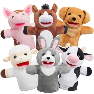 JOYIN 6 Piece Farm Animal Hand Puppet SetJOYIN Friends Deluxe Kids Puppets with Working Mouth (Pack of 6) for Imaginative Play, Show Theater, Easter/Birthday Party Supplies