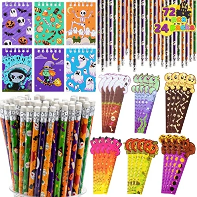 JOYIN 72 Pcs Halloween Assorted Stationery Set, 24 Packs Theme Pencils, Rulers and Notepads Party Favor Set for Kids Classroom Favors, Gift Prizes, Trick or Treat Goodie Bag Filler