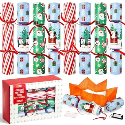 JOYIN 8 Pack Christmas Party Favor Non Snap Table Favors with Holiday Supplies for Kids and Adults, Parties, Dinners Holidays