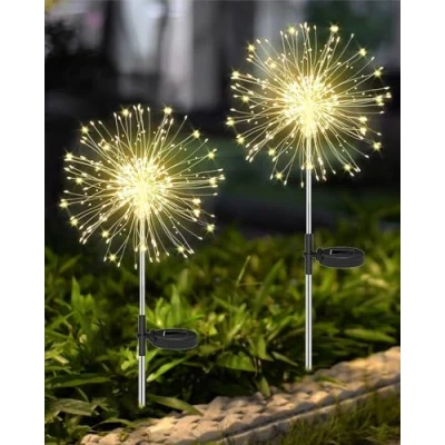 Upgrade Solar Powered & High Flexibility : The dandelion solar lights outdoor garden use a 800mAh rechargeable battery, which get rid of socket control. The garden lights solar powered is made of 40 high-quality flexible copper wires and 120 LED, which can be easily bent into any shape you want,such as flowers, fireworks,etc 8 Lighting Modes & Easy to Use : The solar garden lights have 8 lighting modes. Just open the switch and stick them into the soil, then solar lights outdoor garden ornaments will automatically recharge the battery by solar energy during the day, and automatically light up when night falls, you can adjust the mode to your different needs Energy Efficient & IP65 Waterproof : The outside solar lights for garden with low-heat-emission LED bulbs, environmental protection and safe to use. The solar firework lights outdoor garden are IP65 waterproof, you can use these even on snowing and rainy days. Perfect for outdoor, patio, lawn, wedding, party, etc Widely Used & Long Working Time - The unusual garden lights is very bright and suitable for decorating patio, backyard, courtyard, flowerbed, walkway, fence, etc. Built-in 800mAh AAA Ni-MH rechargeable battery, standard sunshine charging 6-8 hours at daytime, working 8-10 hours at night after fully charged Item delivered & After-Sales Service - 2 * Joysing decorative solar lights outdoor garden, 1 * User Manual. We are committed to bring the best experience to customers. If you have any question with our solar firefly decorations, please contact us via the Customer Service Email and we will reply to you within 12-hours