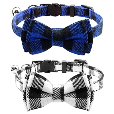 Joytale Cat Collar with Bell and Bow Tie, Quick Release Safety Collars for Kitten Cats, Soft Tartan Collar, 2 Pack, Blue+Black