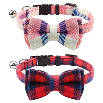 Joytale Cat Collar with Bell and Bow Tie, Quick Release Safety Collars for Kitten Cats, Soft Tartan Collar, 2 Pack, Pink+Red