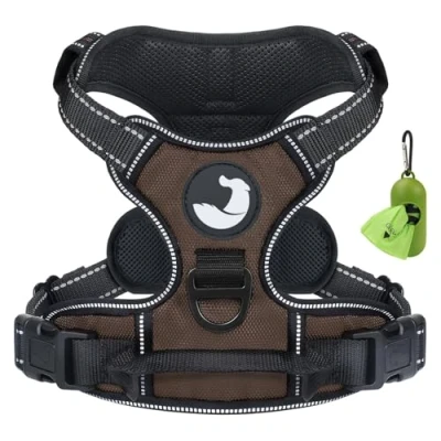 Joytale Dog Harness Large No Pull for Dogs with 2 Leash Clips, Adjustable Soft Padded Reflective Easy Control Handle Walking and Training, Brown, XL