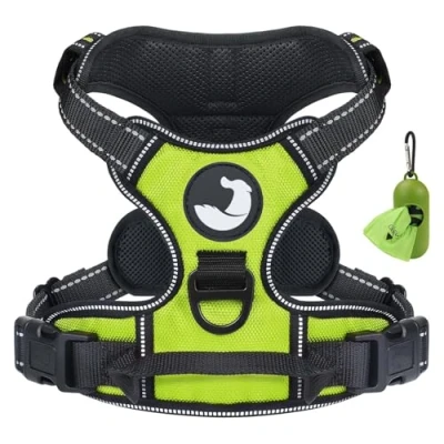 Joytale Dog Harness Medium, No Pull Pet with 2 Leash Clips, Adjustable Soft Padded Vest, Reflective Choke Oxford Vest Easy Control Handle for Walking and Training, Green,M