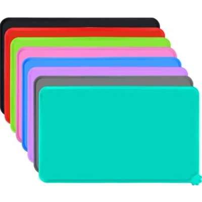 Silicone Meterial: This dog food mat made from silicone provides a clean and comfortable mealtime for pets. The flexible design easily rolls or folds compactly - suit for homes where space-saving storage matters Anti-slip and Waterproof: Non-slip pet feeding mat grips firmly to wooden floors, tiles, or laminate, helps reduce bowl slippage. Keep your floors pristine and your pet’s mealtimes clean with this silicone feeding mat Raised Edges: Specially designed raised edges create a containment barrier that prevents food and water splash while your pet eats, protecting your floors and carpets from messy accidents Different choose: The pet mats are available in 2 metric sizes (47x30cm, 53x37cm ) and 8 different colours. Which is a convenient food mats no matter for French Bulldog or Labrador Clean Easily: Cleaning this cat food mat is easy. Dishwasher-safe and wipe-clean silicone surface ensures effortless post-meal sanitation, suitable for humidity-prone homes