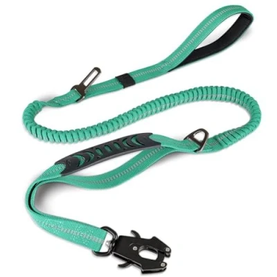 Joytale Tactical Dog Lead Heavy Duty, 1.2 1.8m Shock Absorbing Bungee leash with 2 Handle, Metal Carabiner Clip, Car Seatbelt, Strong No Pull for Medium Large X Dogs, Teal