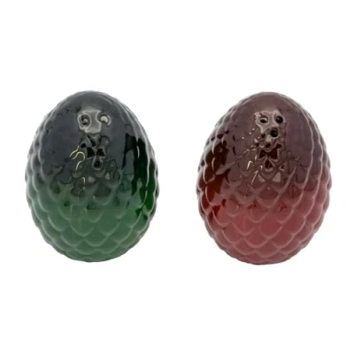Game of ThronesDragonEgg Salt and Pepper Dragon egg in 3D shape In gift box 15.5 x 9 x 10.5 cm Material: ceramic, hand wash recommended, not dishwasher safe and not microwave safe A real eye-catcher in any kitchen and kitchen table