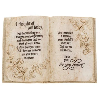 Beautifully textured stone-like appearance Easel back for tabletop display, Plus hanger for wall display Made of resin, 8 1/2wide x 6High