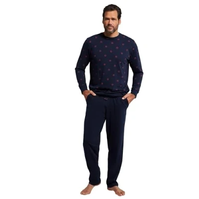 JP 1880 Men's Bauch Schlafanzug, Zweiteiler, Longsleeve, elastischer Saum, Lange Hose, bis 8 XL Pajama Set, Imperial Navy, 3XL