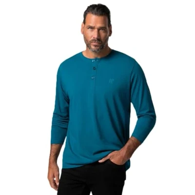 JP 1880 Men's Henley T Shirt, Blue, XXXX Large