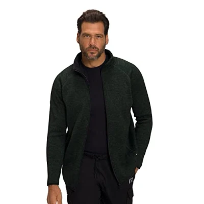 JP 1880 Men's Jay pi Outdoor Knitted Fleece Jacket Cardigan Sweater, Dark Green, XXXXXXXL