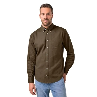 JP 1880 Men's Jp1880 Shirt, Long Sleeve, Linen Mix, Buttondown Collar, Modern Fit, Up to 8 XL Taupe,