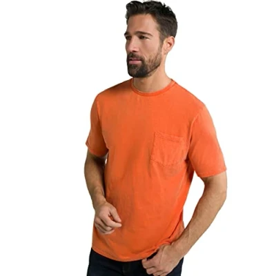 JP 1880 Men's T Shirt, slub, Garment Dyed, Chest Pocket, Orange, L