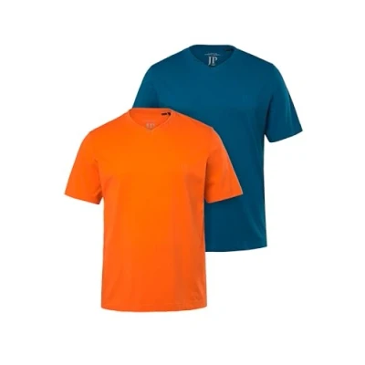 JP 1880 Men's T Shirts, Basic, 2er Pack, V Ausschnitt, Halbarm, Bis 8 XL, Clementine, 5XL