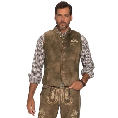 JP 1880 Men's Vest, Goat Suede, Costume, Stand up Collar Quilted, Moss, 66