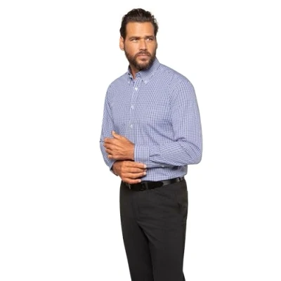 JP 1880 Men's Big & Tall Easy Care Button Down Collar Check Shirt Light Blue Multi XXXXXX Large 722859 71 6XL