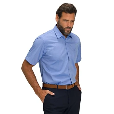 JP 1880 Men's Halbarm Hemd, Variokragen Shirt 1/1, Hellblau, XXXXXXXXL