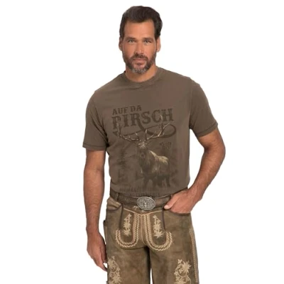 JP 1880 Men's T Shirt, Costume, Half Sleeves, Large, Vintage Look, Chest Print, Crew Neck, Taupe, 7XL