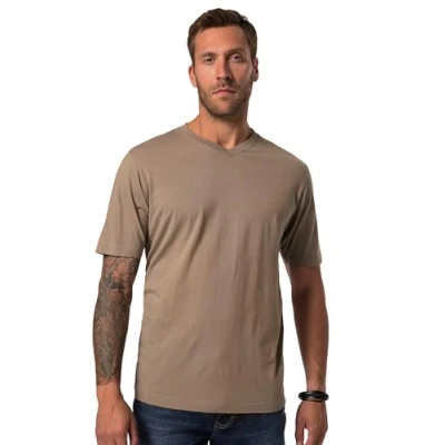JP 1880 Menswear Big & Tall Plus Size L 8XL Classic Short Sleeve V Neck Tee Light Brown XXXXXXX Large 702415343 7XL