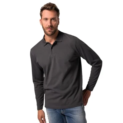 JP 1880 Menswear Big & Tall Plus Size L 8XL JP1880 Polo Shirt, Basic, Long Sleeved, piqué, up to 8 XL Slate XXXX Large 799230121 4XL