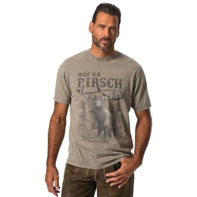 JP 1880 Menswear T Shirt, Traditional Costume, Short Sleeve, Large Print, Vintage Look, Chest Round Neck ash Grey XX 818508180 XXL