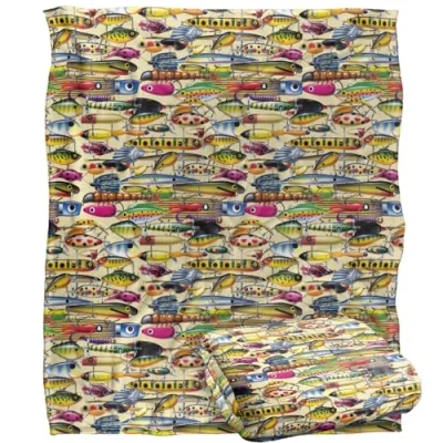 JQ Licensing Fishing Lures Pattern 2 Silky Touch Super Soft Throw Blanket 152 X 127 cm