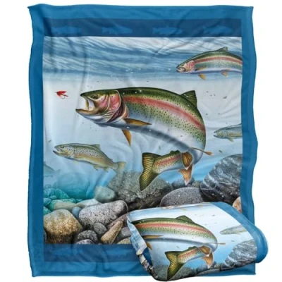 JQ Licensing Trout Fishing Scene Silky Touch Super Soft Throw Blanket 152 X 127 cm
