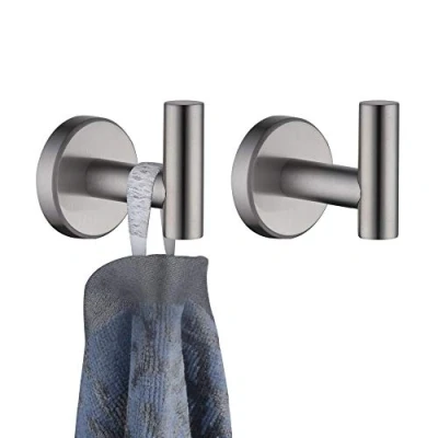 JQK Bathroom Towel Hook, Coat Robe Clothes Bath Wall Hooks for Kitchen Garage, 2 Pack Brushed Finish, A1160 BN P2