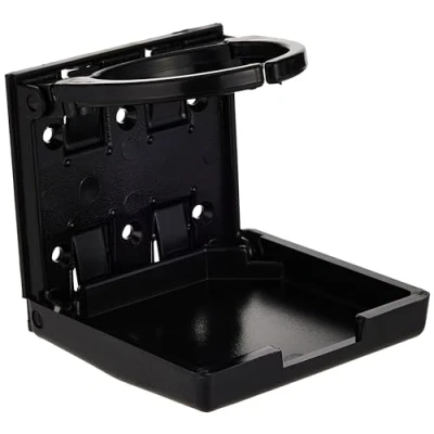 Mounts easily to any flush surface Folds flat 4” x 4” when not in use Adjustable to hold up to 44 fl. oz. Made of sturdy ABS plastic Black