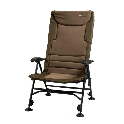 JRC Defender II Relaxa Hi-Recliner Arm Chair - Strong and comfortable chair with armrests - Backrest can be adjusted to 8 different angles - Extra wide seat - Very long backrest (84cm) - Strong frame made of high quality steel - Ergonomically designed padded polyester + polar fleece cover - Mud-resistant feet - Adjustable leg length with locking system The JRC Defender II Relaxa Hi-Recliner Arm Chair is a sturdy and comfortable arm chair designed for optimal comfort during outdoor activities. The backrest can be adjusted to 8 different angles, allowing users to personalize their seating position. With an extra wide seat, a very long back (84cm) and a strong frame made of high quality steel, this chair offers durability and support. The ergonomically designed padded polyester and polar fleece cover enhances comfort, while mud-resistant feet and an adjustable leg length with locking system provide stability and adaptability to different surfaces.