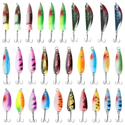 JSHANMEI 30pcs/lot Fishing Lure Kit Mixed Color Diving Depth Metal Spoon Spinner Tackle Artificial Assorted Lures