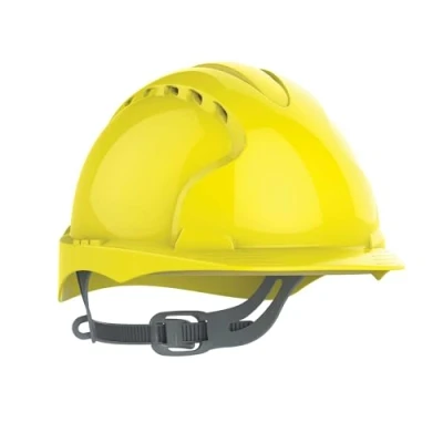 JSP EVO2 Safety Helmet with Slip Ratchet Adjustment Harness Vented EN 397 Industrial Hard Hat for Building, Construction and Work sites Yellow (AJF030 000 200), 53 64