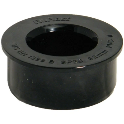 Main Product Description: Introducing the FloPlast Boss Adaptor, a versatile and robust solution for your plumbing needs. This 32mm black PVC-U solvent weld boss adaptor is manufactured to ensure strength, durability, and ease of use, making it ideal for high-temperature waste discharge applications. It seamlessly connects 32mm pipes to a 110mm soil pipe waste system, providing efficient wastewater drainage and foul discharge from appliances. Features: - Strong and Durable Design: Constructed from unplasticized polyvinyl chloride (PVC-U) to meet British Standard specifications. - Lightweight and Easy to Work With: Enhances installation efficiency and convenience. - High-Temperature Compatibility: Suitable for waste discharge applications that require high-temperature resistance. - Push-Fit Joint System: Innovative seal and snap cap design for secure connections. - Compatibility: Integrates with all FloPlast Above and Below Ground Drainage Systems. - Solvent Weld Installation: Secured