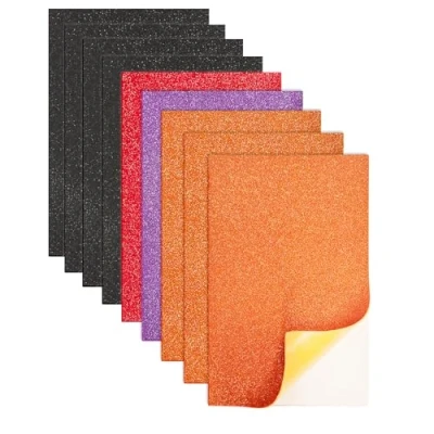 Jtnohx Glitter Foam Sheets with Self Adhesive, Sticky Eva Stickers, Adhesive for Crafts, 9 Pcs 17.78x28.7cm Paper Art Projects (Halloween Colour Series)