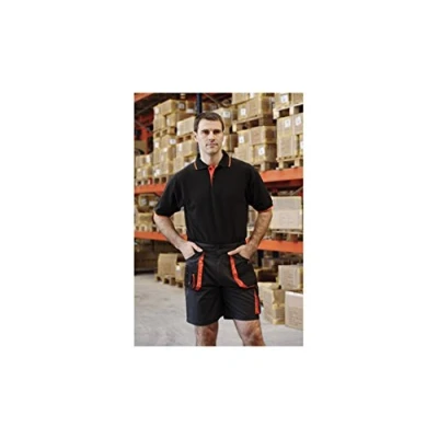 Juba 100% Cotton 200gsm Short Sleeved Polo Shirt, Black with Orange Details, Size XS