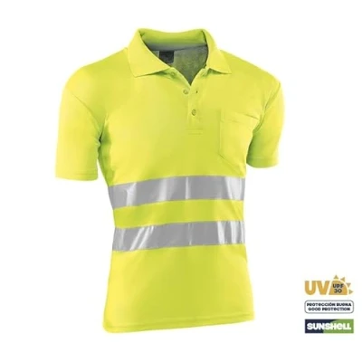 Juba 100% Polyester Short Sleeved Polo Shirt, 140 g/m2, with Reflective Stripes, Fluorescent Yellow, Size 3XL