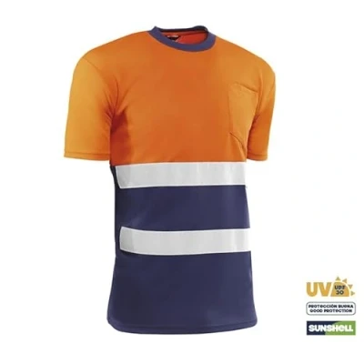 Juba 100% Polyester Short Sleeved T Shirt, 140 g/m2, with Reflective Stripes, Fluorescent Orange/Navy, Size: XL