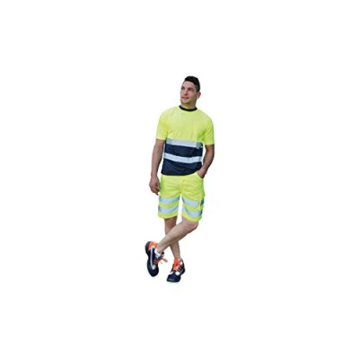 Juba 100% Polyester Short Sleeved T Shirt, 140 g/m2, with Reflective Stripes, Fluorescent Yellow/Navy, Size: S