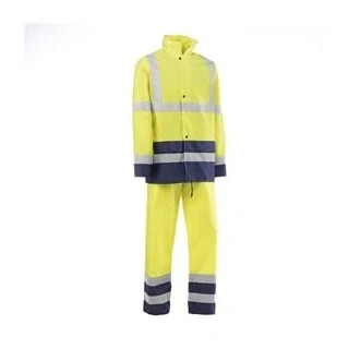 Juba 100% polyester waterproof suit, PU coated Oxford with reflective stripes, Fluorescent yellow/navy, Size L