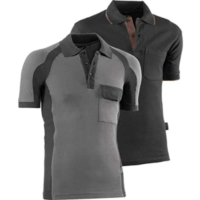Juba 97% Cotton/3% Elastane Short Sleeved piqué Polo Shirt with Chest Pocket, Gray Black Details, Size S