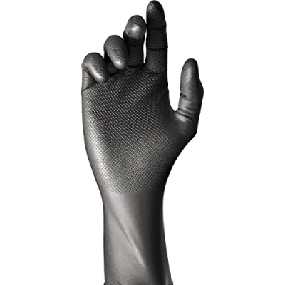 Juba 'Grippaz' Disposable Nitrile Powder Free Coated Gloves, Black, Size 9