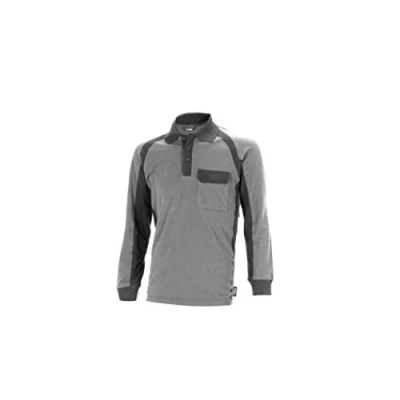 Juba Long Sleeved 97% Cotton/3% Elastane piqué Polo Shirt with Chest Pocket, Gray Black Details, Size S