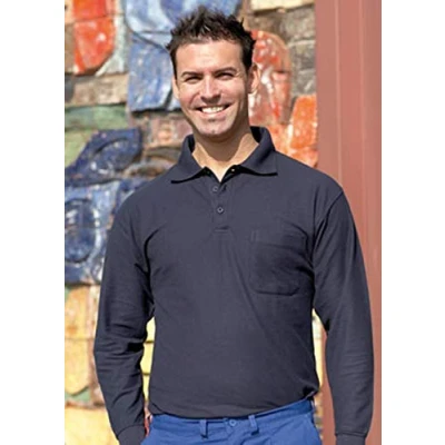 Juba Long Sleeved Double Tuck piqué Polo Shirt with Chest Pocket, 180 g/m2 Cotton/Polyester, Navy Blue, Size L