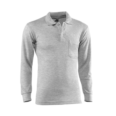 Juba Long Sleeved Double Tuck piqué Polo Shirt with Chest Pocket, Polyester/Cotton 180 g/m2, Grey, Size M