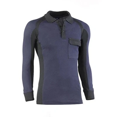 Juba Long Sleeved piqué Polo Shirt, 97% Cotton/3% Elastane, Chest Pocket, Navy with Black Details, Size XS